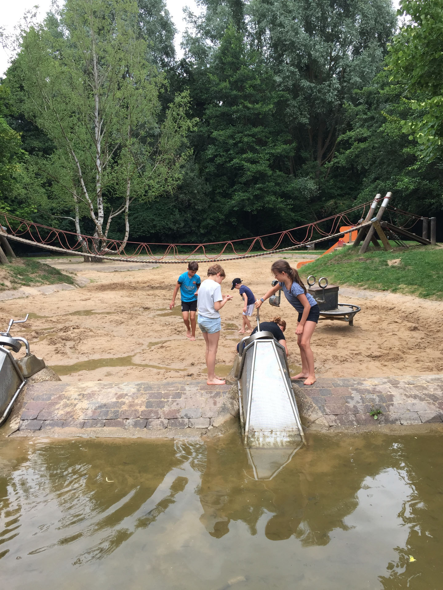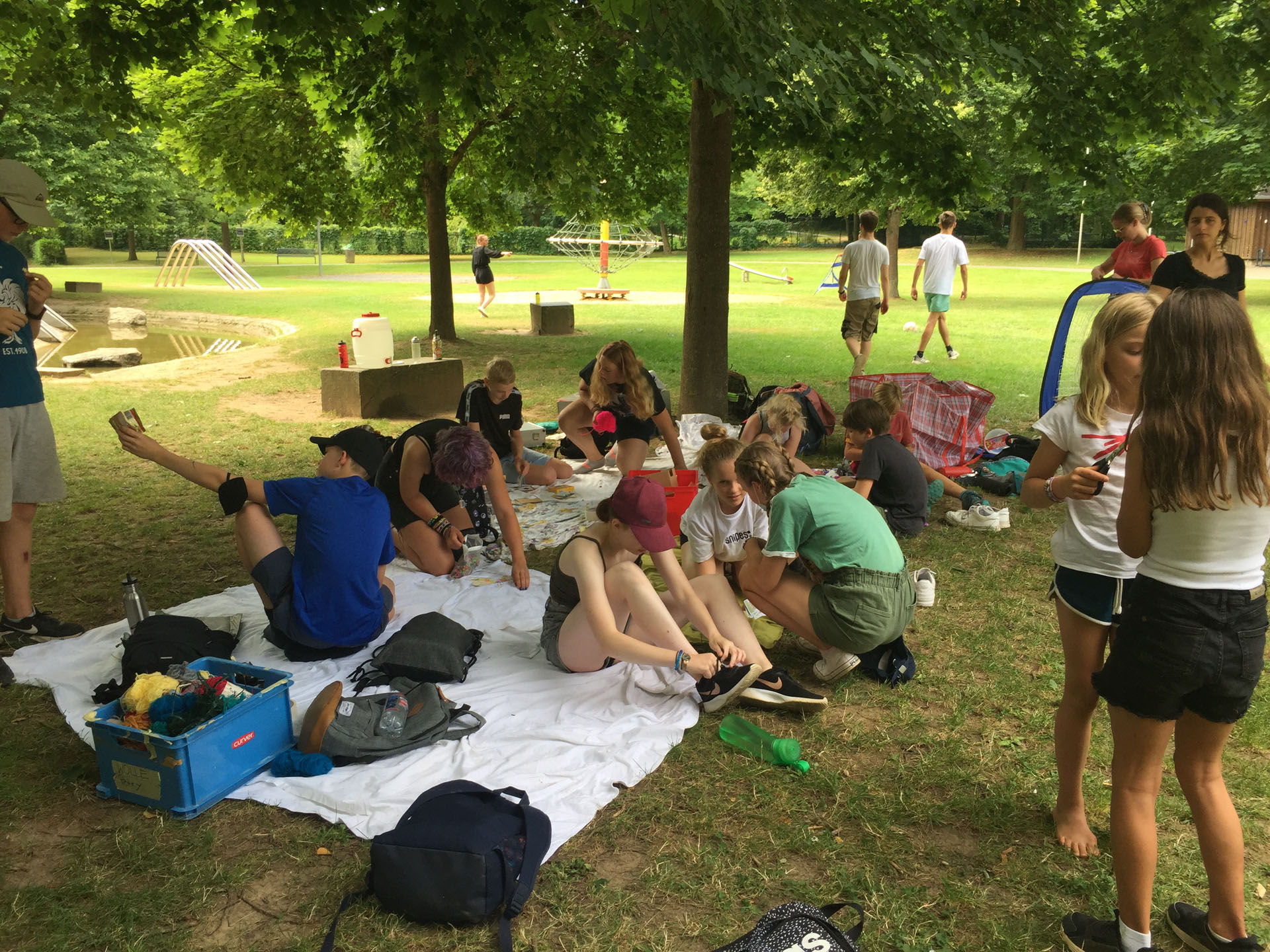 Am Montag haben wir passend zu unserem Lagermotto und dem dazugehörigen Monat Juli einen Ausflug gemacht und sind in den „Urlaub“ gefahren. Wir haben einen Wasserspielplatz, ganz in der Nähe der Jugendherberge besucht. Es haben sich alle sehr darüber gefreut und sind, sobald wir ankamen, losgerannt und haben gespielt.
