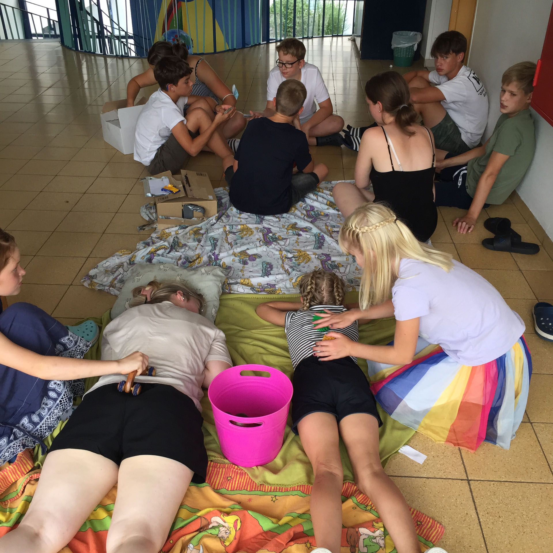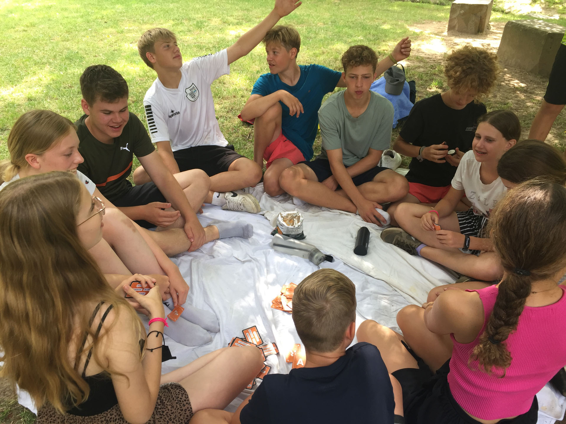 Der Abend hat mit einer Stimmungsrunde abgeschlossen, bei der alle Kinder die Gelegenheit hatten zu sagen, wie sie sich fühlen, was besonders toll ist oder ob sie noch etwas bedrückt. Etwas später als sonst, sehr erschöpft aber auch sehr glücklich und fröhlich sind dann alle zu Bett gegangen und schliefen sofort tief und fest ein.