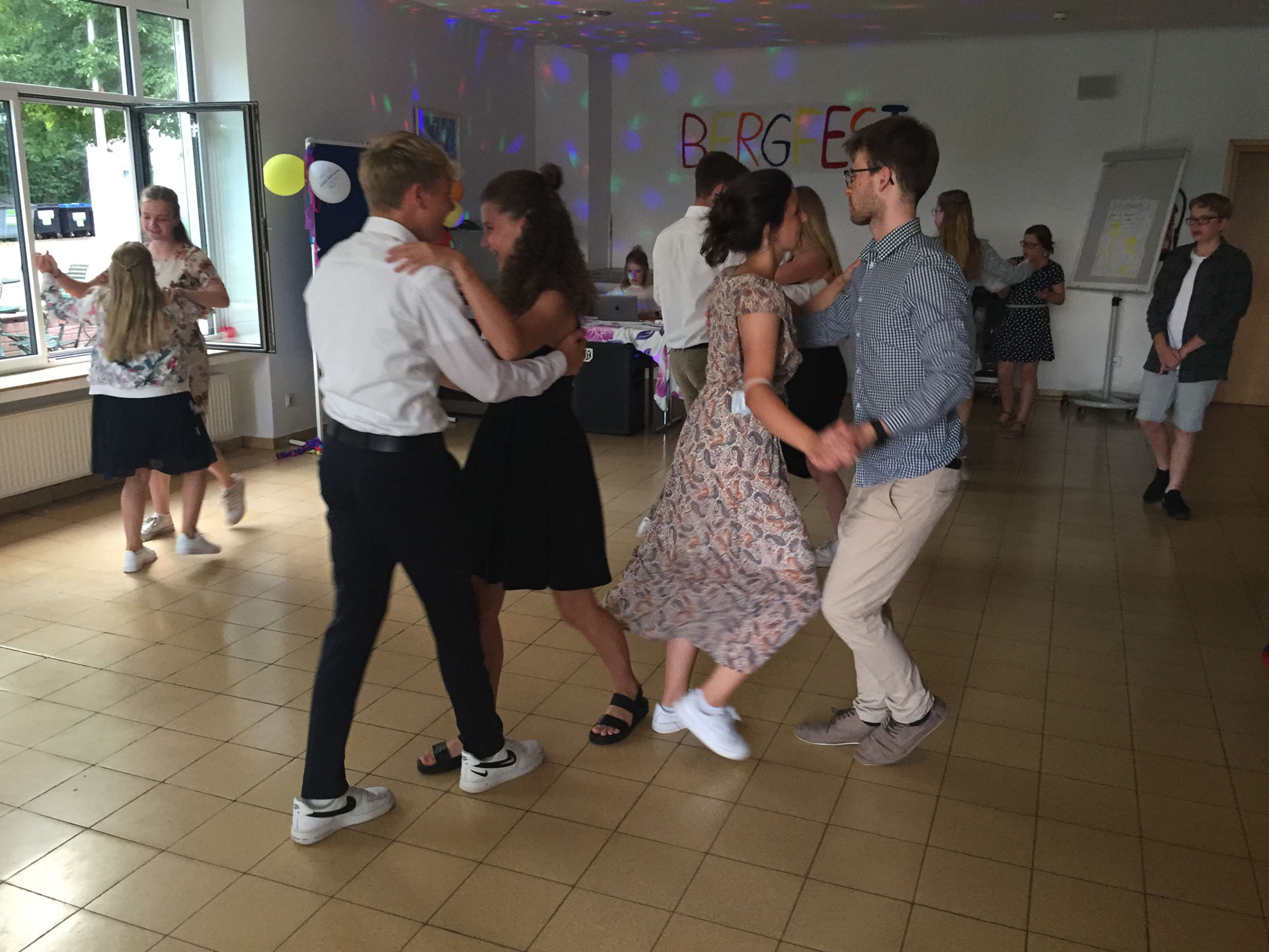 Abends war allen klar, welches Programm als nächstes folgen sollte: BERGFEST! Die Mitte des Lagers war erreicht und alle machten sich schick, um genau das zu feiern. Wir bestaunten unsere schönen Kleider, tollen Frisuren und schicken Schuhe. Auf der Party gab es zudem noch einige Überraschungen: es wurden frische Waffeln gebacken, Cocktails mit Cocktailschirmchen, Zuckerrand und Strohhalm wurden serviert und viele leckere Snacks trugen zu einem gelungenen Abend bei. Der Höhepunkt der Party war der Tanzwettbewerb im Paartanz. Es haben sich einige Paare gefunden, die an dem Wettbewerb teilnehmen wollten. Nach einigen Discofoxliedern, Drehungen und Figuren stand die Entscheidung der Jury fest. Die Gewinner des diesjährigen Tanzwettbewerbs sind: BEN und JOHANNA