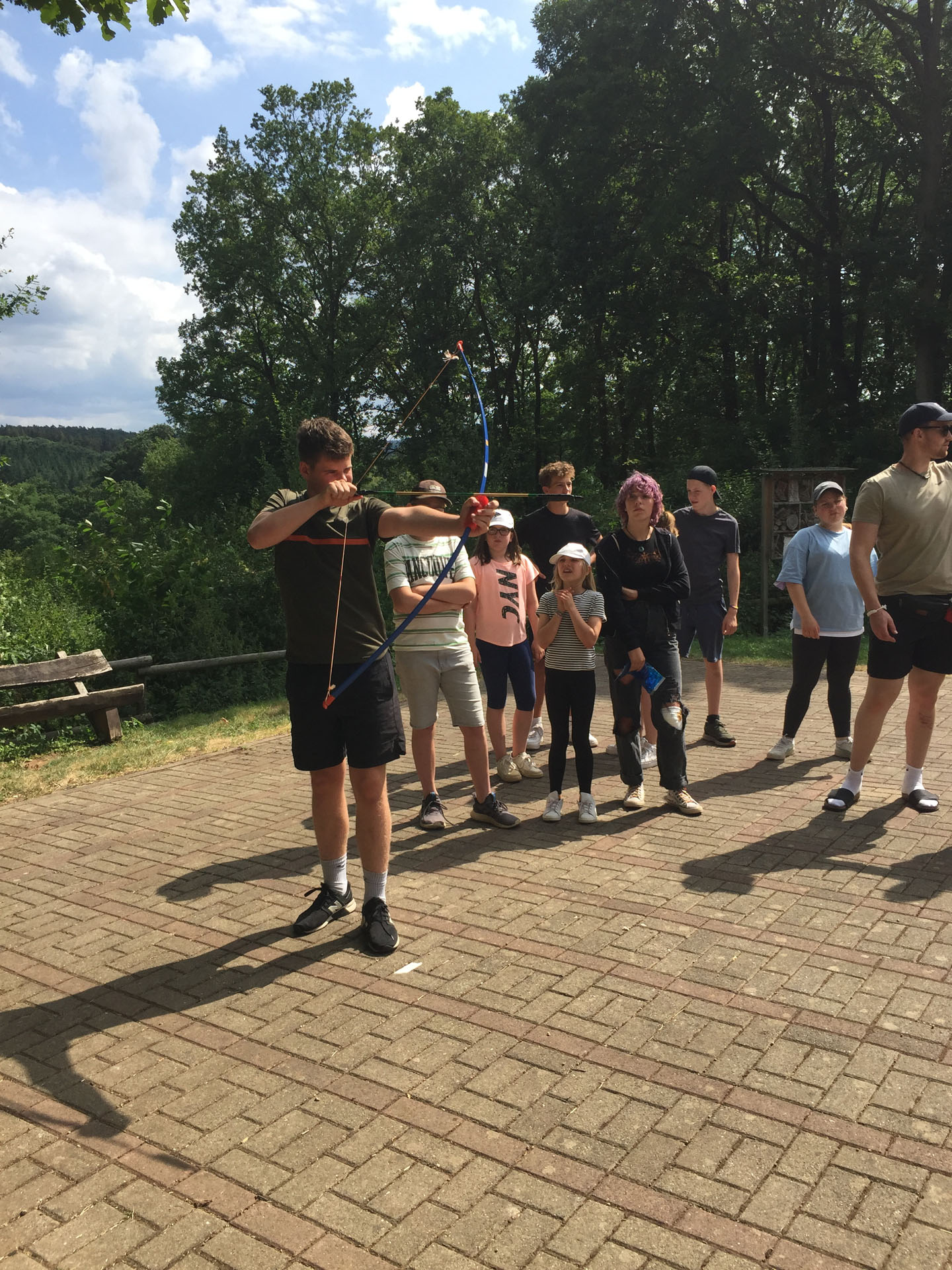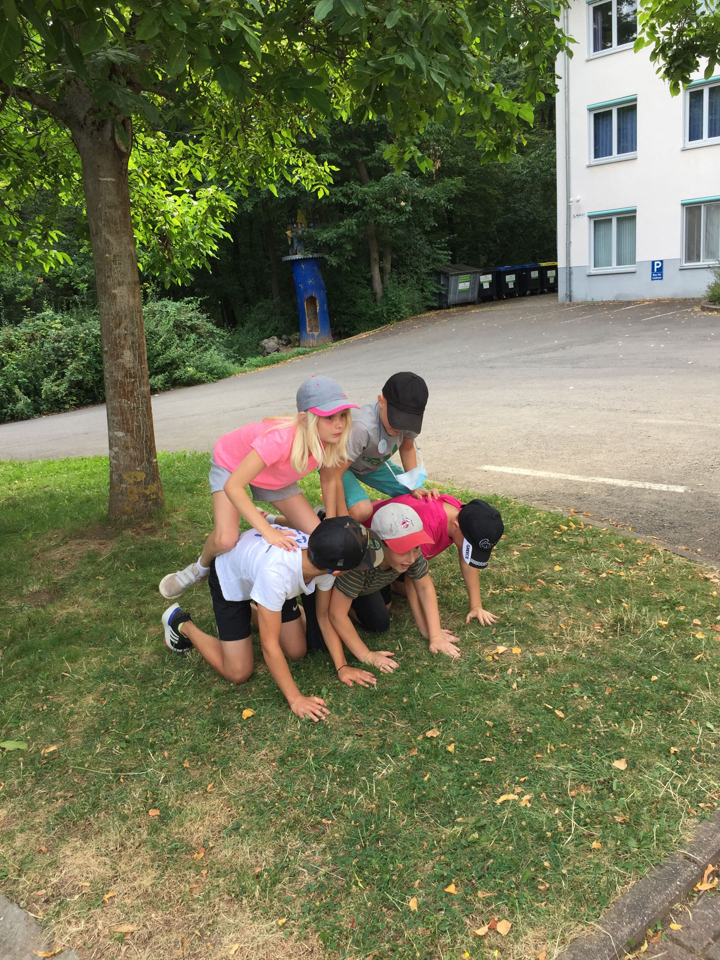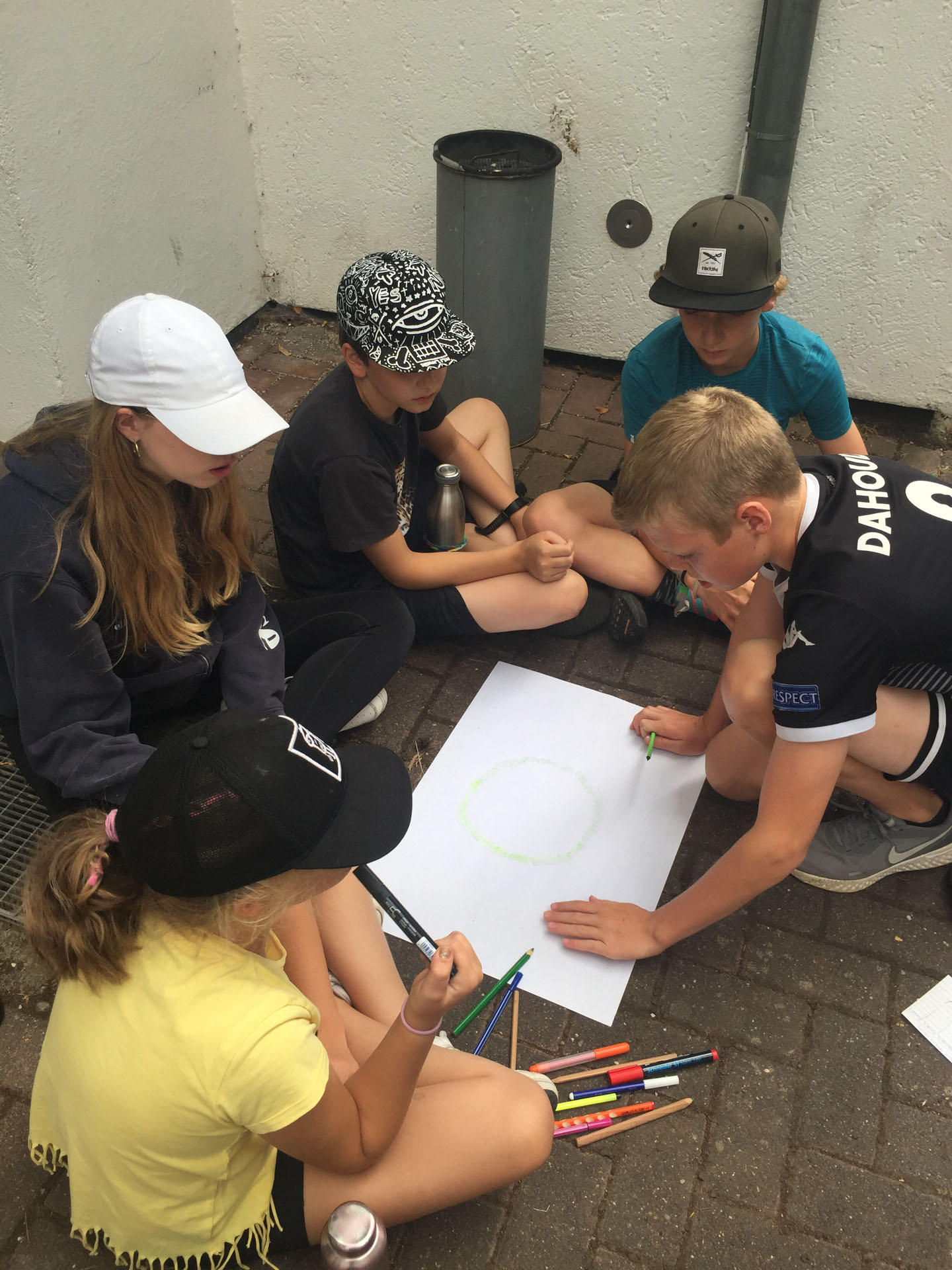Mittags gab es wieder Action und wir veranstalteten eine CJK Sommerolympiade. Hier wurden die Kinder in gemischten Gruppen eingeteilt. Zu Beginn des Spiels überlegten sich die Kinder einen Gruppennamen und gestalteten eine Fahne, die das zu vertretende Land darstellte. An unterschiedlichen Stationen konnten die Länder dann in olympischen Disziplinen antreten. Als Zusatzaufgabe sollten die Gruppen eine eigene Hymne entwerfen. Die Hymnen wurden am Ende den anderen Gruppen vorgestellt und boten eine gute Chance noch einmal Extrapunkte zu verdienen. Die diesjährige Gewinnernation der Sommerolympiade ist: Grünland.