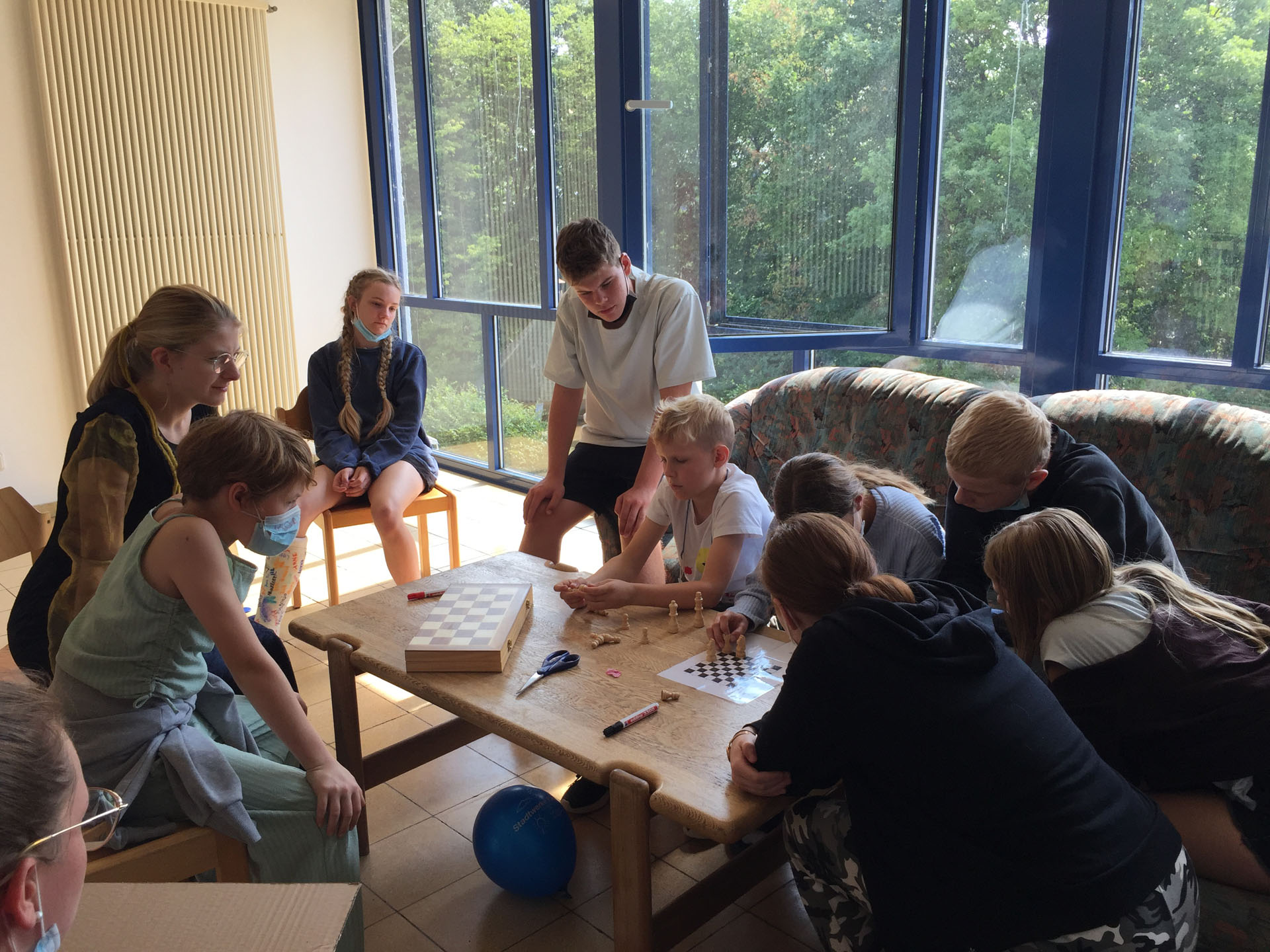 Um diesen anstrengenden Tag gegen Ende noch zu verarbeiten, veranstalteten wir noch ein entspanntes AG- Programm. Es wurde gebastelt, Gesellschaftsspiele gespielt und für die Kinder, die immer noch die Power benötigten stand ein bewegungsreiches Zirkeltraining an, was zum Ende hin, sogar die größten Sportskanonen an ihr Limit brachte.