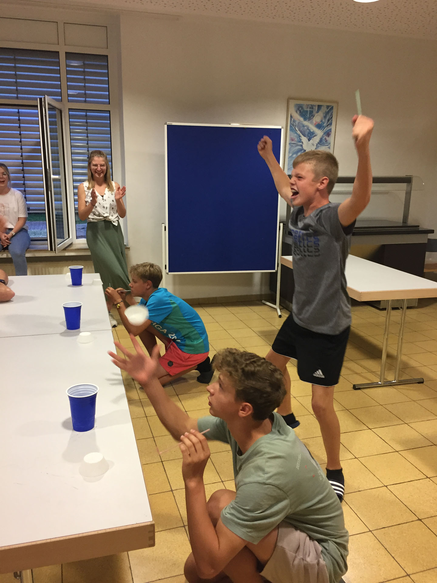 Mittags mussten dann das Betreuerteam den Betreuerraum aufräumen und zusammenpacken. Währenddessen haben die Kinder samt Bettzeug und Süßigkeiten in gemeinsam den Film „Cars“ geschaut. Um dann noch die Zeit bis zum Abendessen zu überbrücken, starteten wir eine kleine Spielerunde, in welcher „Hu-Hu-Ha“ zum Beispiel nicht fehlen durfte.