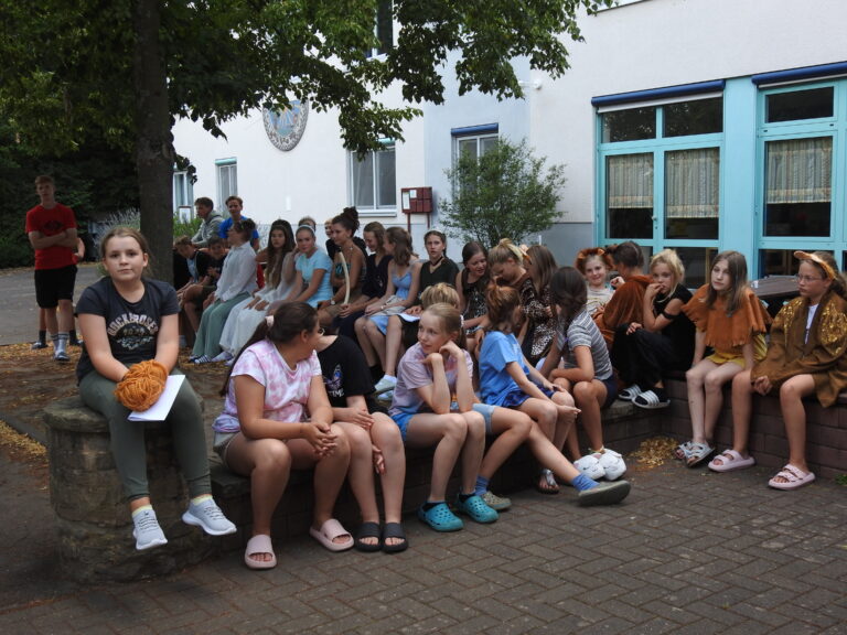 Endlich war es soweit. Der Bus stand bereit, die Koffer waren fertig gepackt und die Kinder waren voller Vorfreude. Kurz nach dem Reisesegen des Pastors konnte es dann endlich losgehen. Die Kinder fanden ihren Platz im Bus und traten die Reise, nach Euskirchen-Kirchheim an. Gerade angekommen, ging es sofort auf die Zimmer, wo die Zimmereinteilung geregelt und sich eingerichtet wurde. Traditionellerweise wurden dann auch direkt die Gruppennamen besprochen und ein kleiner Auftritt für unseren legendären Vorstellungsabend einstudiert, um ihn, passend zum eigenen Gruppennamen, dem gesamten Lager zu präsentieren. Doch bevor dieser starten sollte, ging es noch auf die große Wiese hinter unserer Jugendherberge. Dort wurde Fußball, Volleyball oder auch Pillepotten gespielt, bis die Glocke zum Abendessen läutete.