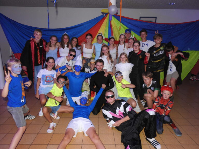Auch am Abend ging es nicht weniger spannend weiter mit einer Helden-Party. Hier kamen die Kinder um 20:15 Uhr, als ihre Kindheitshelden verkleidet im alten Speisesaal an. Trotz eines anstrengenden Tages war die Stimmung super und es wurde ordentlich getanzt und laut mitgesungen.