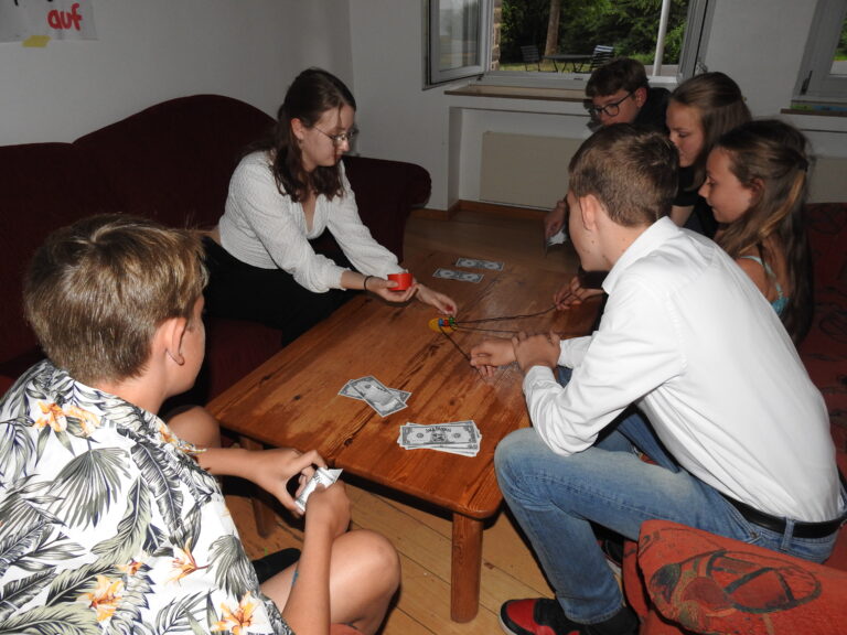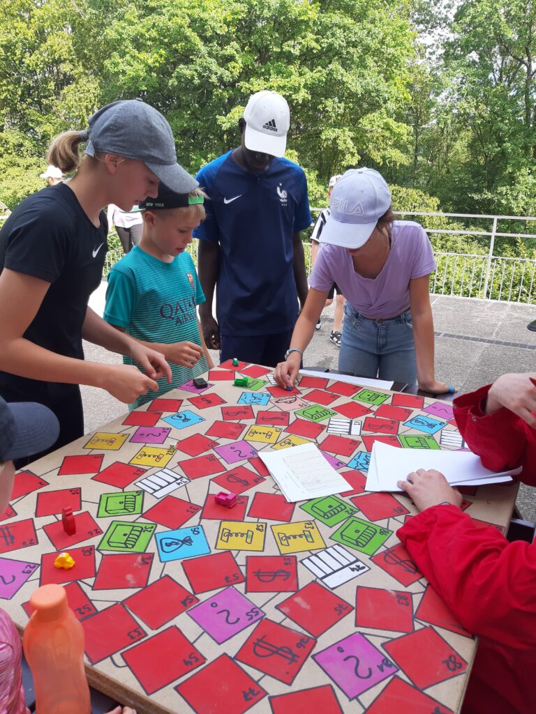 Mittags stand ein großes Stationsprogramm an: wir spielen Chaotenspiel. Bei diesem Spiel geht es darum, dass gemischte Kindergruppen an unterschiedlichen Stationen Spiele spielen müssen, um auf dem Spielbrett weiterzukommen. Parallel müssen die Kinder versteckte Zettel finden, entsprechend dem Feld auf dem sie am Spielbrett stehen. Auf diesem versteckten Zettel steht ein Begriff, der mitgeteilt werden muss, um zu wissen welches Spiel man an der nächsten Station spielt. Ein großes Chaos also! Nach einigen Spielen und vielen versteckten Zettel stand eine Gewinnergruppe fest: es ist Gruppe 5. Herzlichen Glückwunsch!