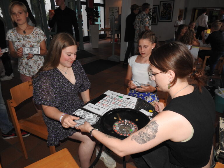 Abends war es endlich soweit: der Casinoabend 2023 fand statt. Nach etlichen Vermutungen, weshalb der Casinoabend noch nicht stattfand wurde das Geheimnis gelüftet. Die Kinder dürfen im CJK Casino mit echtem Spielgeld an unterschiedlichen Spielständen das Spielglück ausreizen. Es wurden Spiele, wie Roulette, Monstermix, Quiz, schnibbeln, Poker und bet and win gespielt. Mit einer abschließenden Hauptwette konnten die Kinder das Geld verdoppeln oder ganz verlieren. Ein super spannender Wettkampf! Gewonnen hat Joshi und ist somit Zocker des Tages. Herzlichen Glückwunsch!